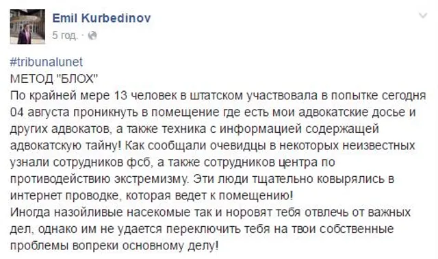 Про це у своєму Facebook написав один із адвокатів Еміль Курбедінов.