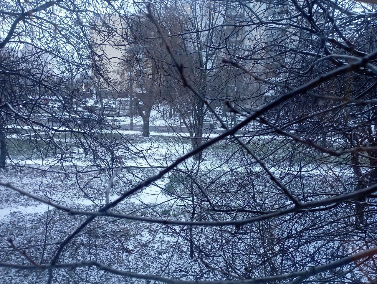 На Київщині сніг вкрив дерева, дахи будинків і подвір'я тонким білим шаром, нагадавши про зиму.