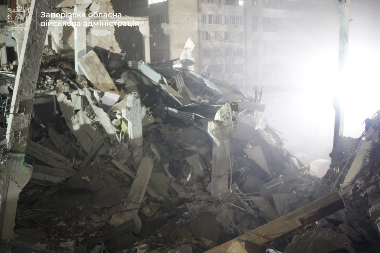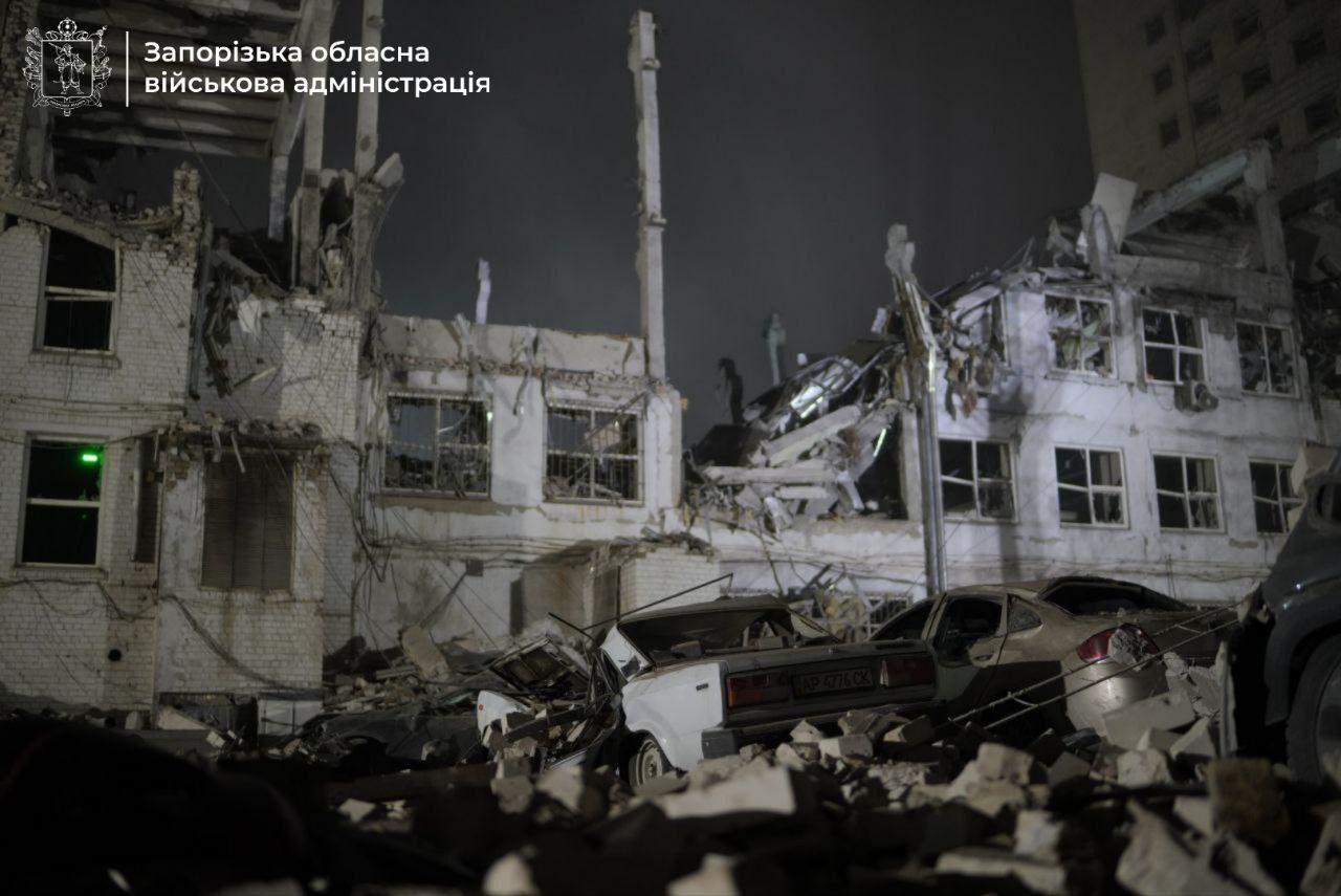 Під завалами будівлі, зруйнованої внаслідок ворожого удару по Запоріжжю, знаходиться щонайменше вісім людей,