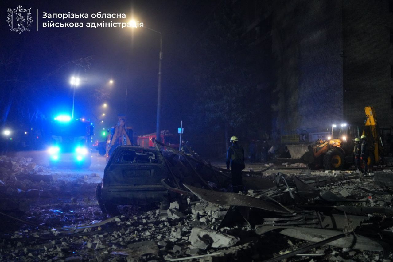 У Запоріжжі внаслідок ворожого удару загинуло троє людей, ще 14 отримали поранення. Наразі рятувальники продовжують пошуково-рятувальну операцію, аби врятувати інших людей. На місці, за даними Запорізької обласної військової адміністрації, працюють також три бригади медиків.