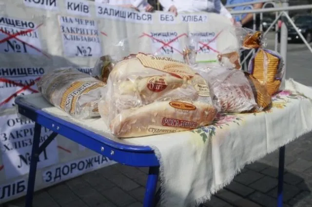 Мітингувальники кажуть, що із 14 хлібокомбінатів Київщини наразі закрили щонайменше 8, ще кілька – під загрозою закриття.