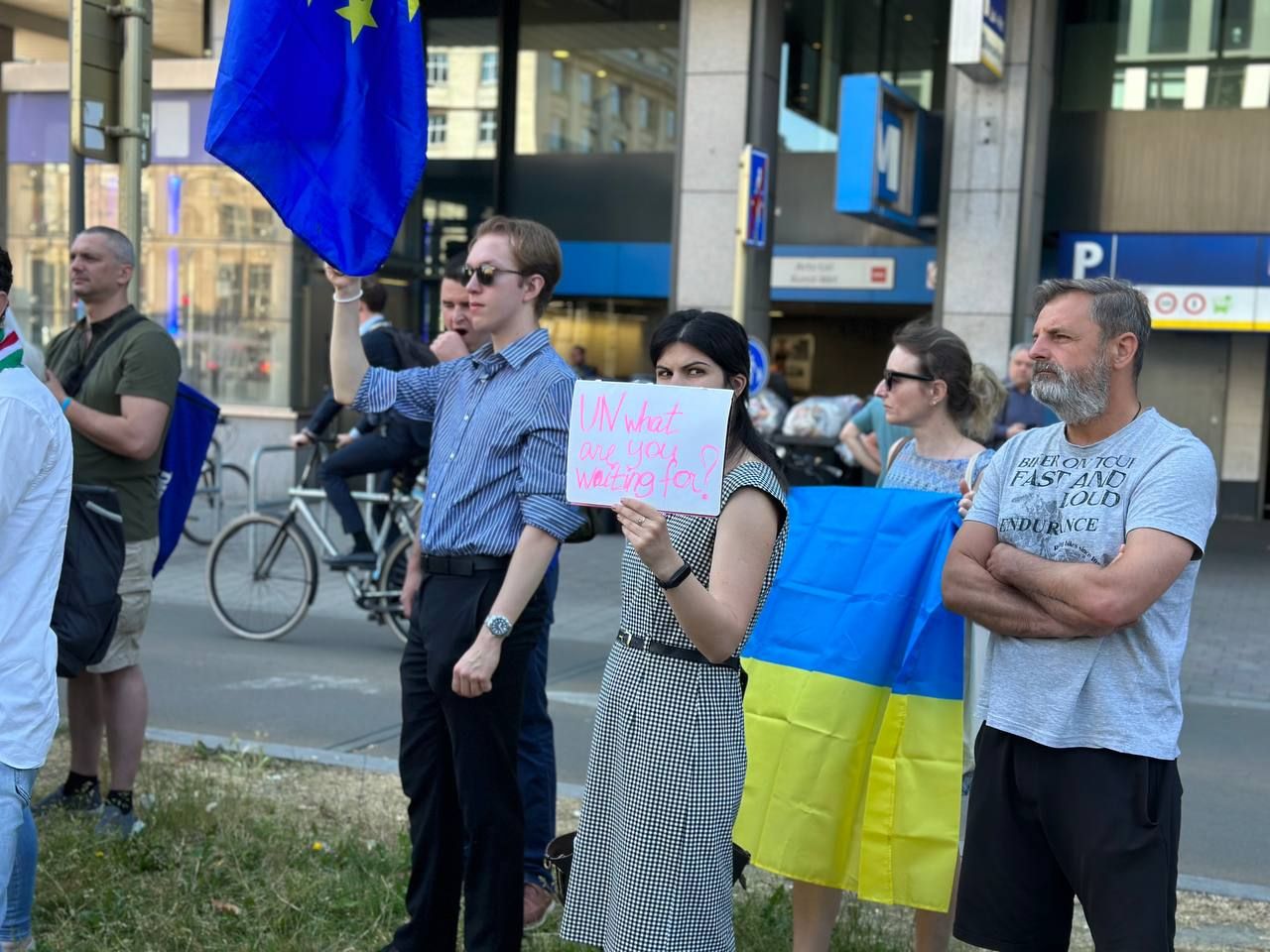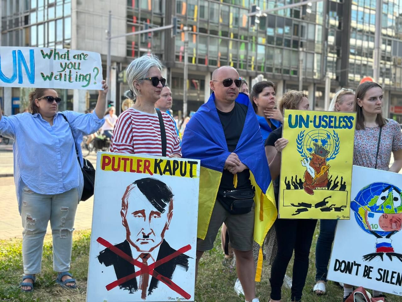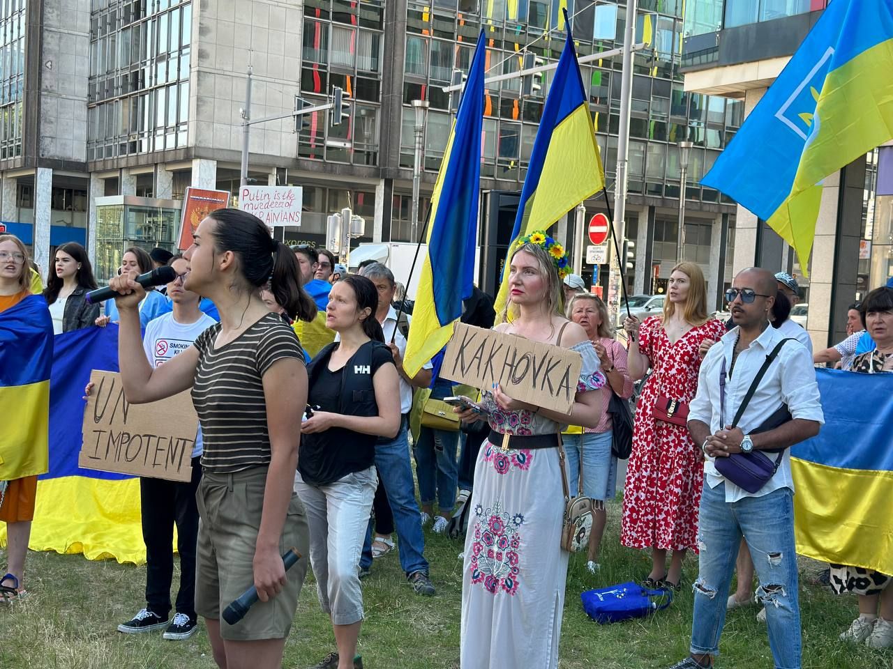 Мітинг у Брюсселі через підрив Каховської ГЕС / фото Софії Назаренко