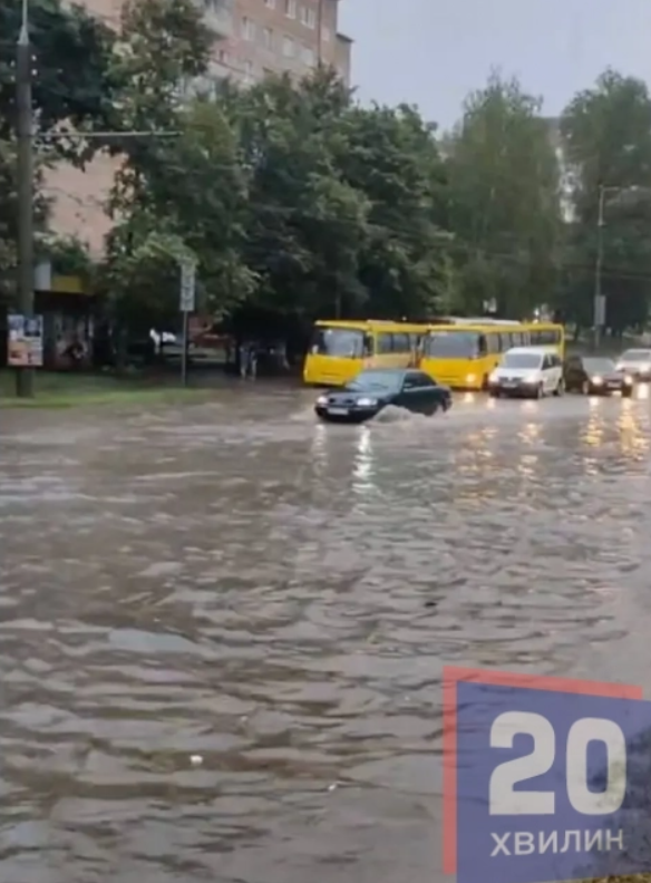 Станом на 20:13 деякі вулиці Тернополя були підтоплені внаслідок вечірньої зливи.