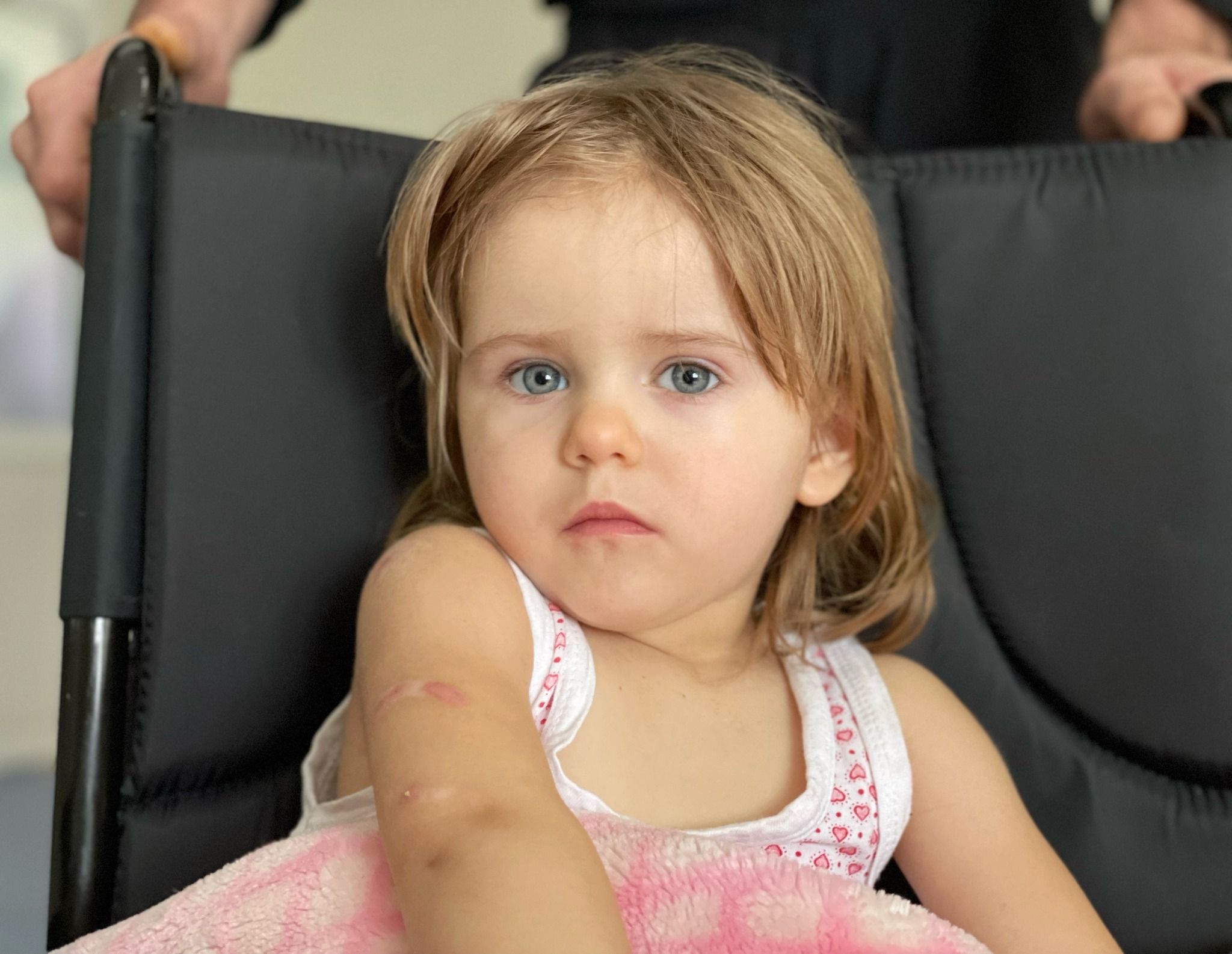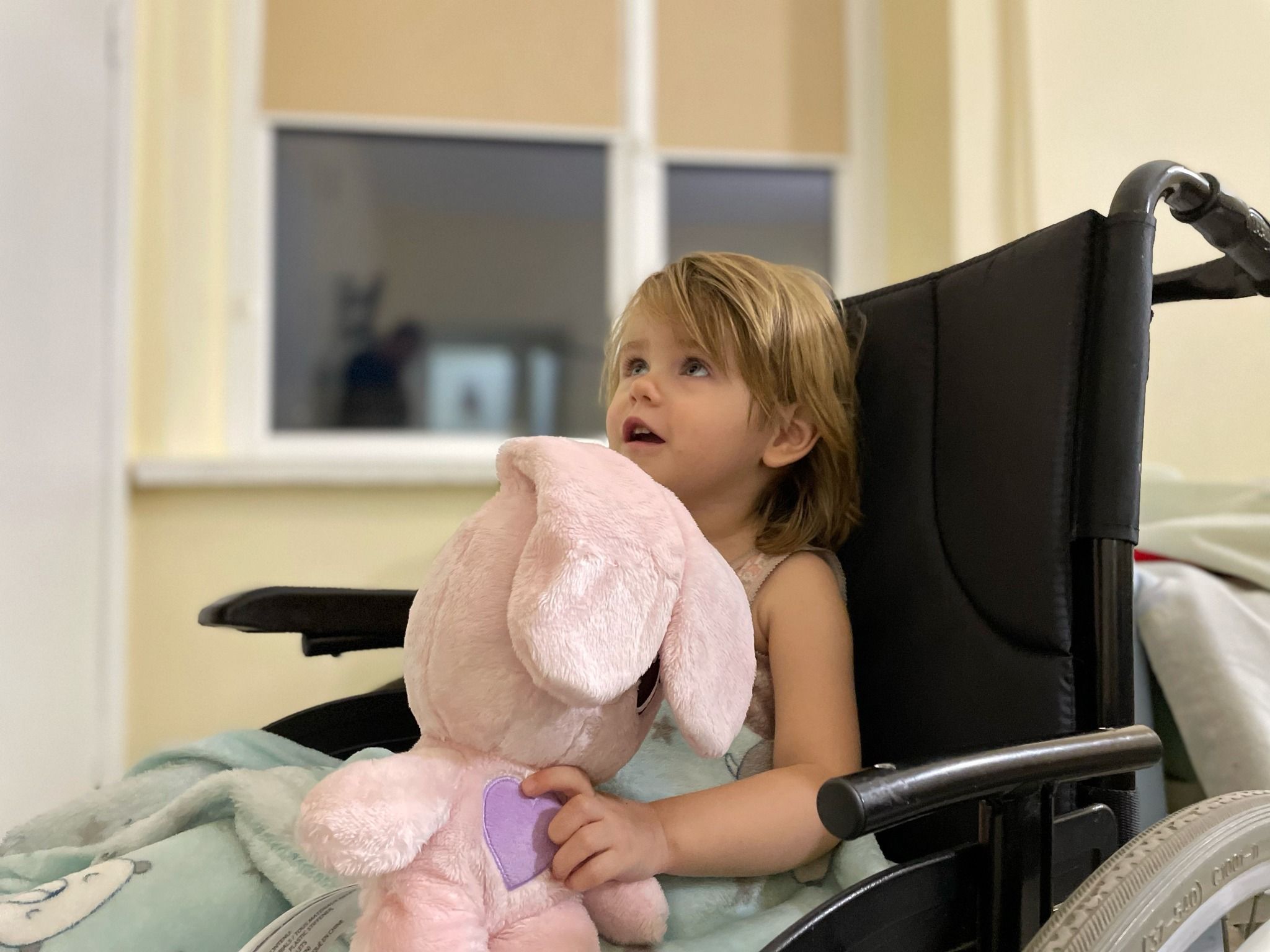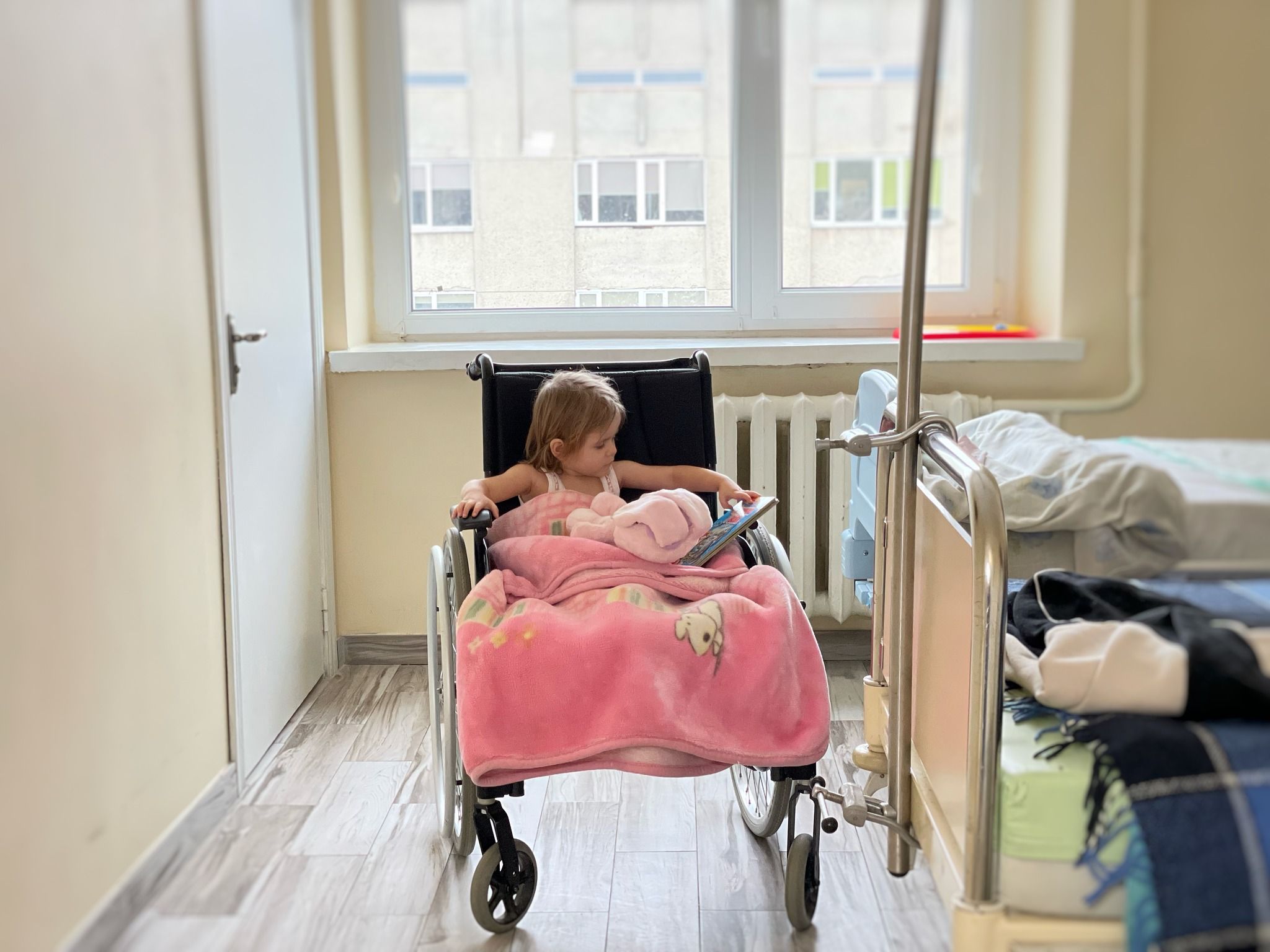 Маленькій Лізі лише 2 роки. Внаслідок поранення через ракетний обстріл вона не може ходити.