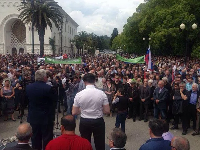 Група з декількох десятків осіб почала розбивати вікна і двері в будівлі адміністрації президента Абхазії і проникла всередину. У той час у кабінеті президента Олександра Анкваба перебували переговорники від опозиції.