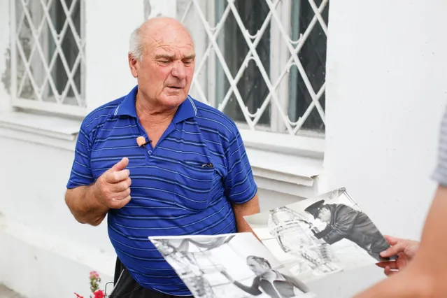 Під час війни маяк переніс справжнє потрясіння: його майже знищили. Яків показує фотографії вежі після реконструкції в 1957 році: