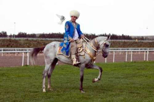 У 2013 президент особисто взяв участь у скачках і фінішував першим. За мить після цього змилений ахалтекінець несподівано втратив контроль і "сонцесяйний наїзник" на швидкості 60 кілометрів на годину гепнувся на ґрунтову доріжку. Спец-служби намагалися приховати цей інцидент, у глядачів перевіряли фотокамери і телефони. Але безуспішно. Після того як Аркадага відкачали він знову з’явився на іподромі і намагався навіть поцілувати свого скакуна, але кінь до цього був не готовий.