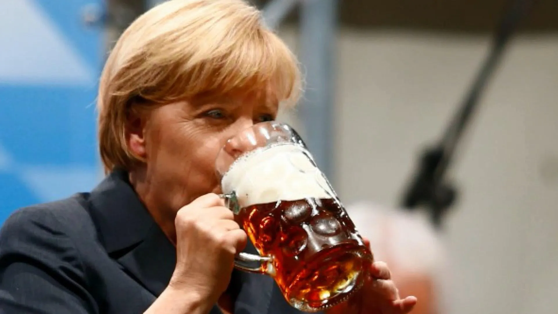 У канцлерки Німеччини Ангели Меркель теж є світлини з келихом.