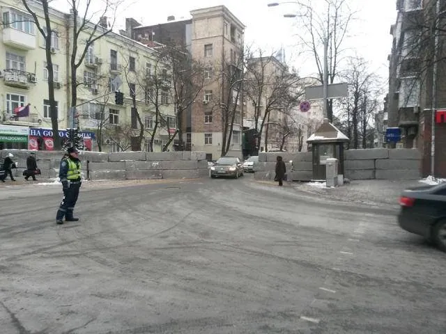 Як повідомляє УНН, блок-пост поперек вулиці Інститутської зводили протягом ночі.