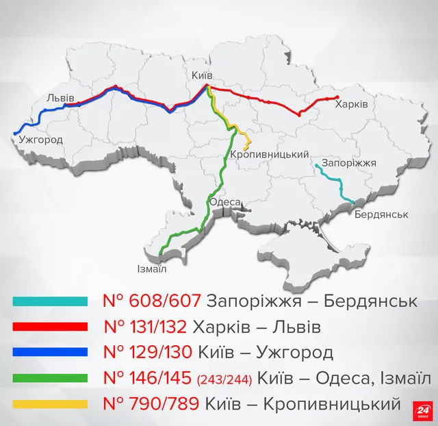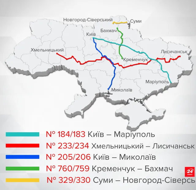Редакція "24" підготувала для вас карту прямування тих потягів, на які вже можна придбати квитки.
