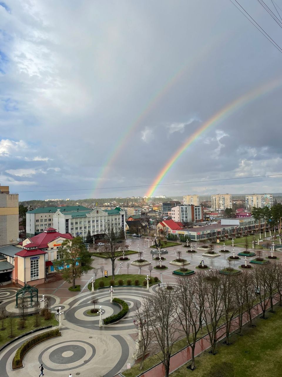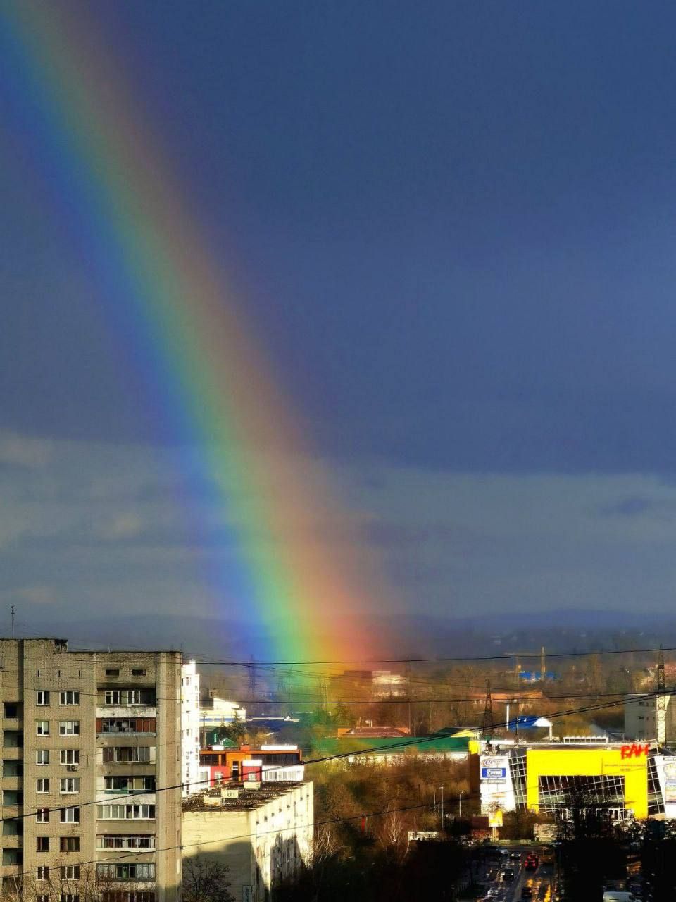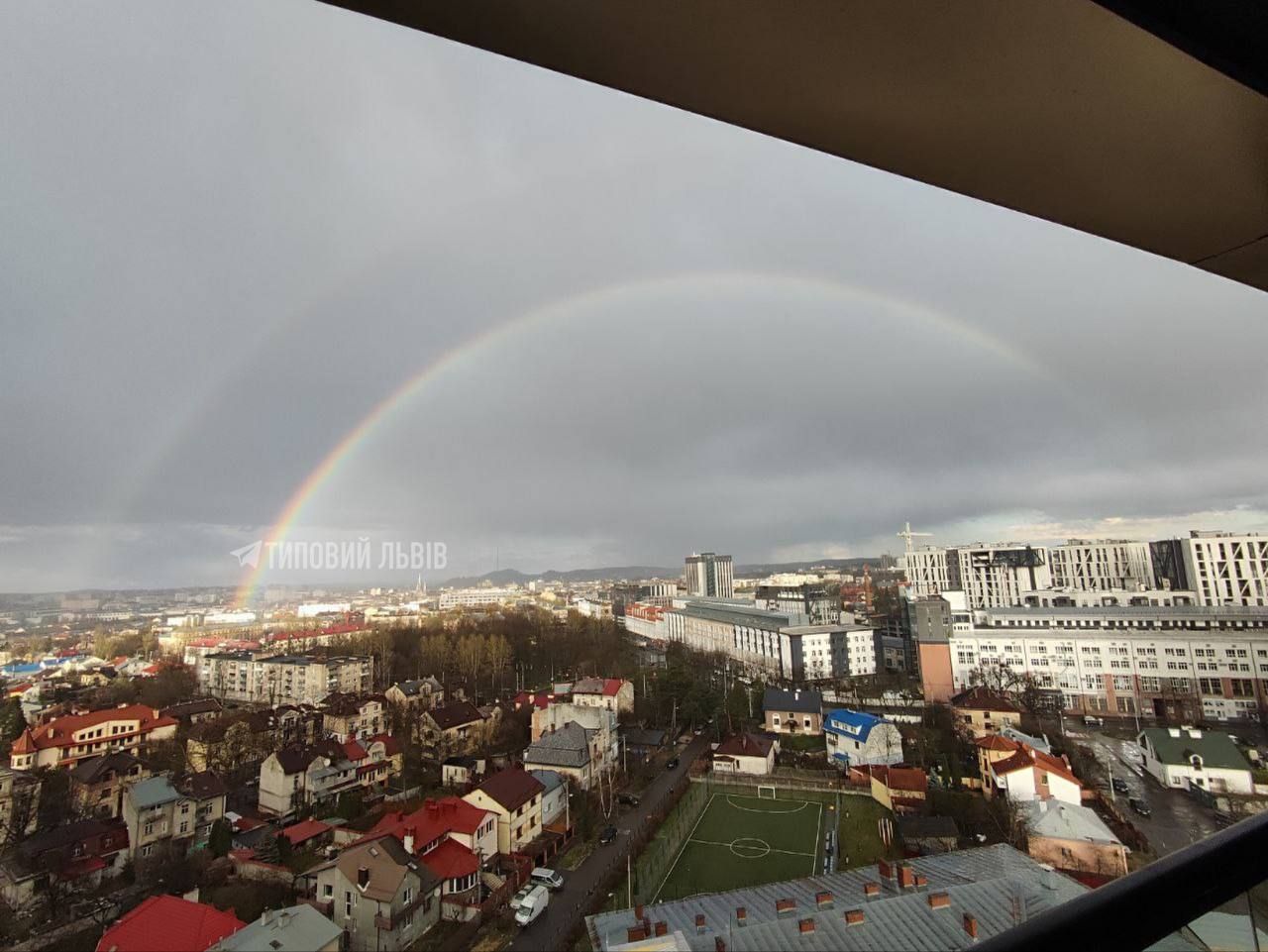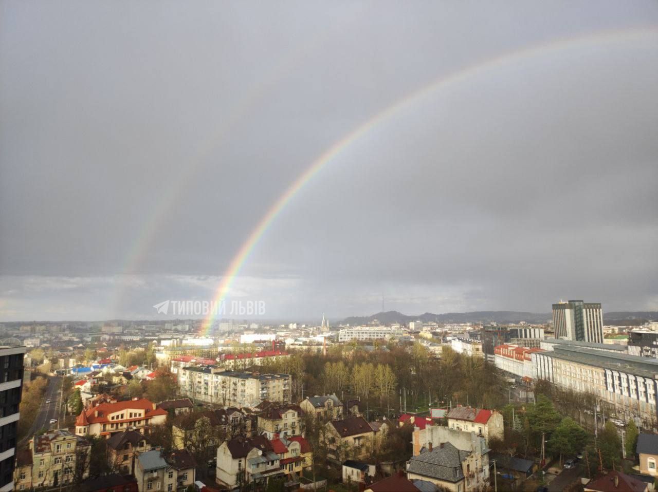 Яскраві кольори виднілись і над небом Львова. Веселка перетинала різні райони міста. Крім того, дивовижний захід сонця був в Одесі. Після дощу також вийшла веселка, а небо набуло вогняного кольору.