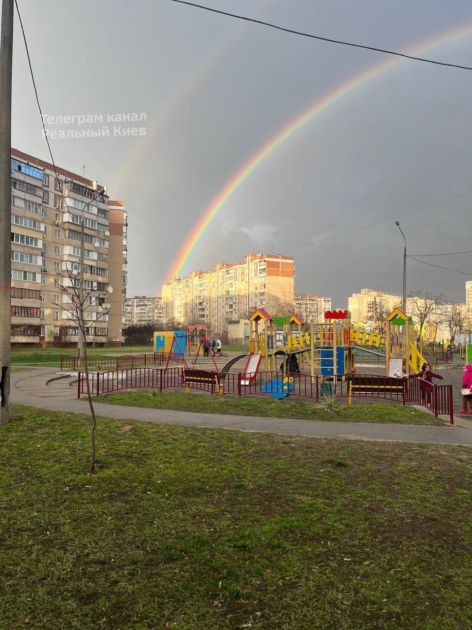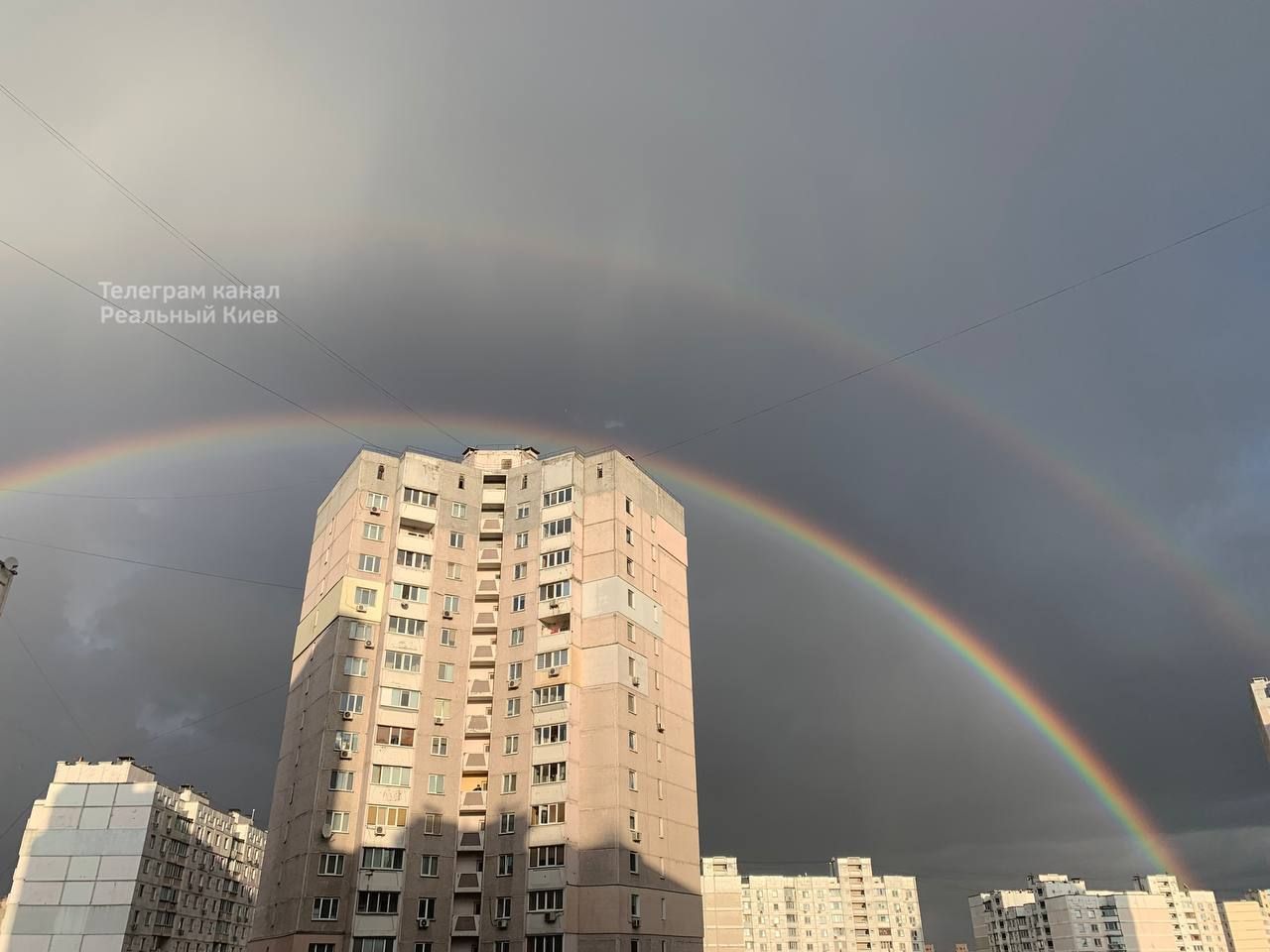 Крім столиці, веселка завітала до Ірпеня та до інших міст на Київщині. Явище мало неймовірний вигляд.