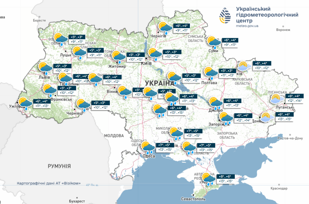 Температура вночі буде +1 – +6, а вдень +8 – +13.