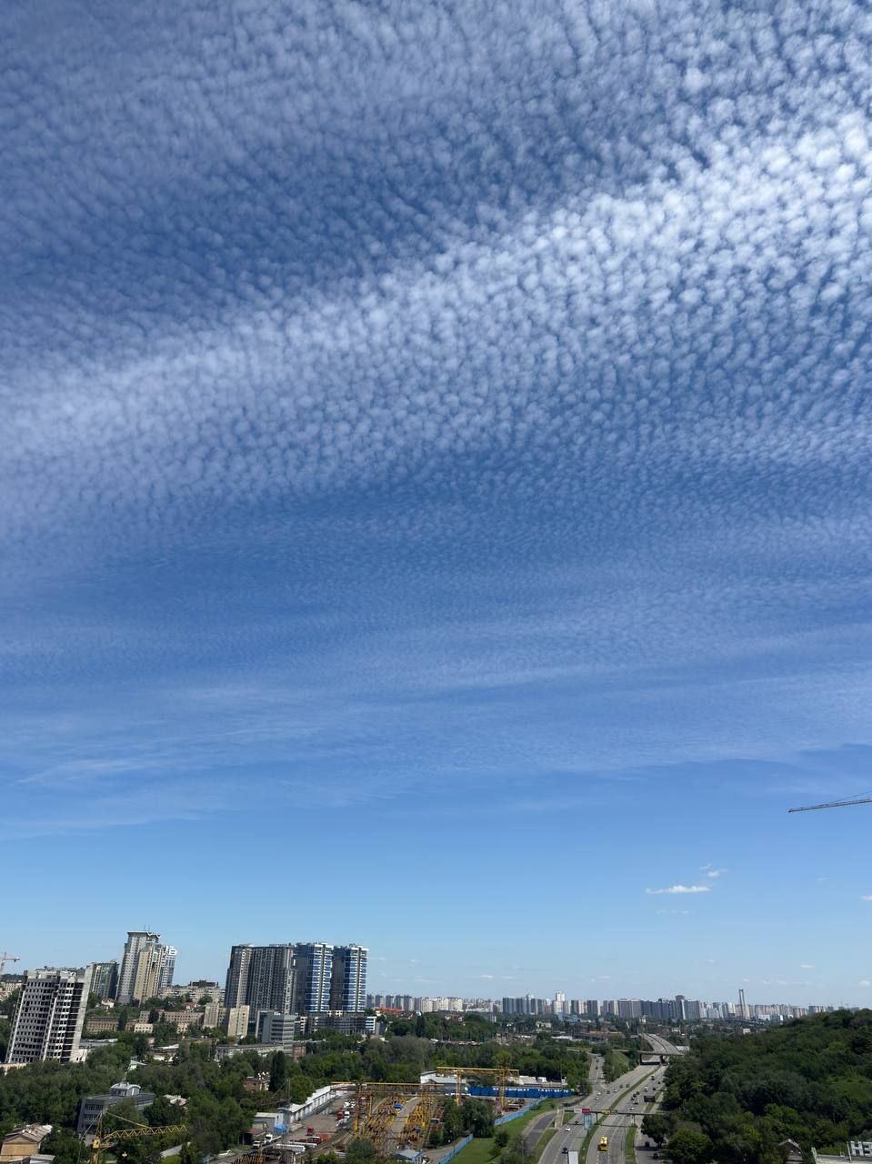В останній день весни у Києві око містян тішили хмари, які схожі на риб'ячу луску. Ймовірно, вони є висококупчастими. Варто зазначити, що такі хмари зазвичай виникають у результаті конвекції в нестабільно стратифікованому повітрі, а також унаслідок поступового сходження повітря перед холодним фронтом.