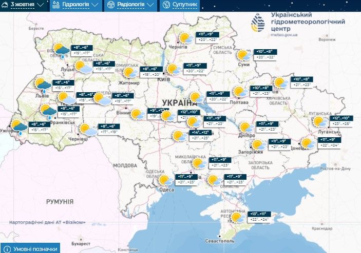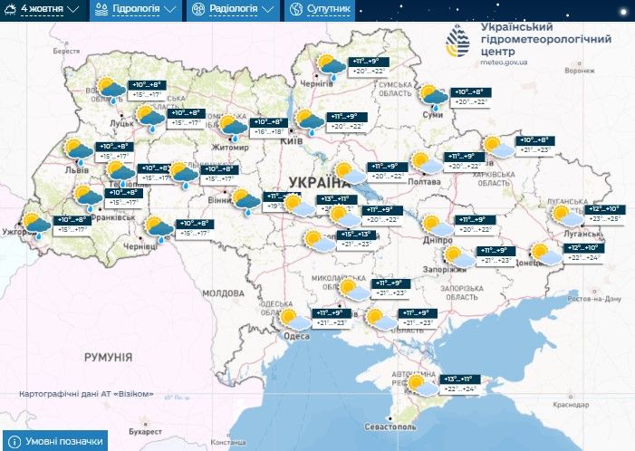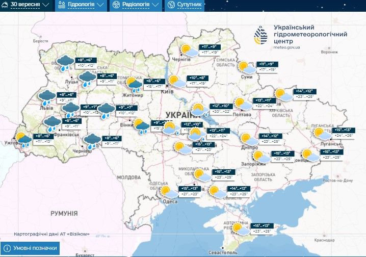 Погода на 30 вересня – 4 жовтня / Скриншоти з Укргідрометцентру