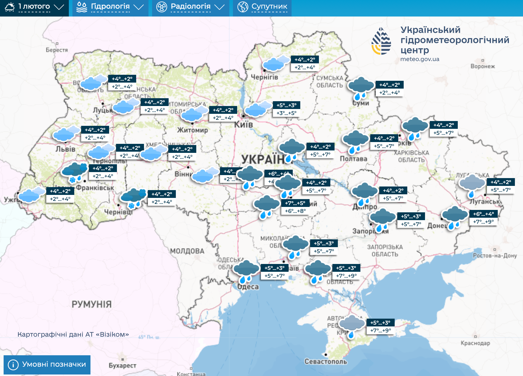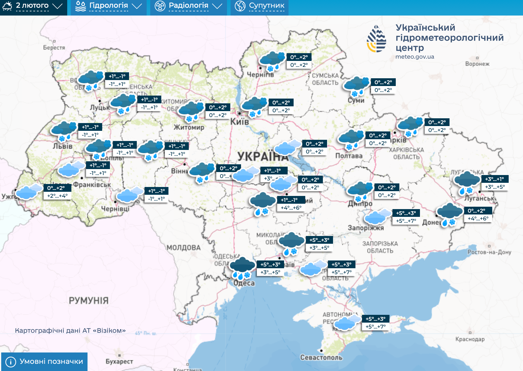 Прогноз погоди на 31 січня – 2 лютого / Скриншоти з Укргідрометцентру