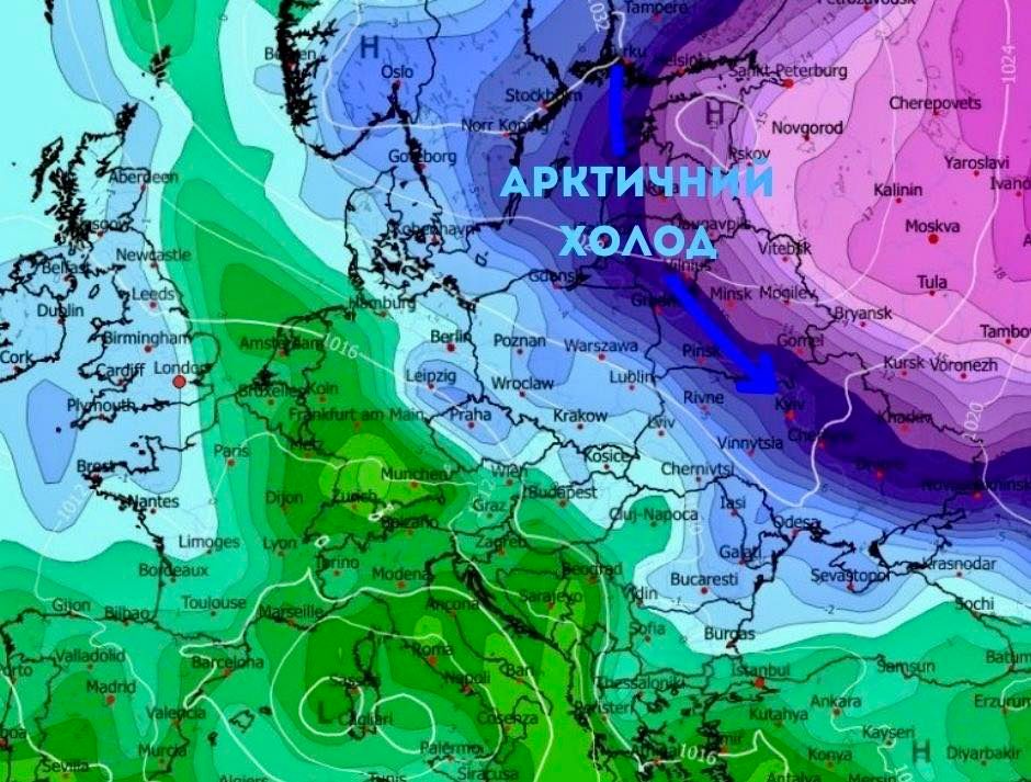 Далі синоптики прогнозують різке вторгнення арктичного холоду. Сталі заметілі та сніговий покрив очікувати не варто, лише подекуди можливий невеликий сніг.