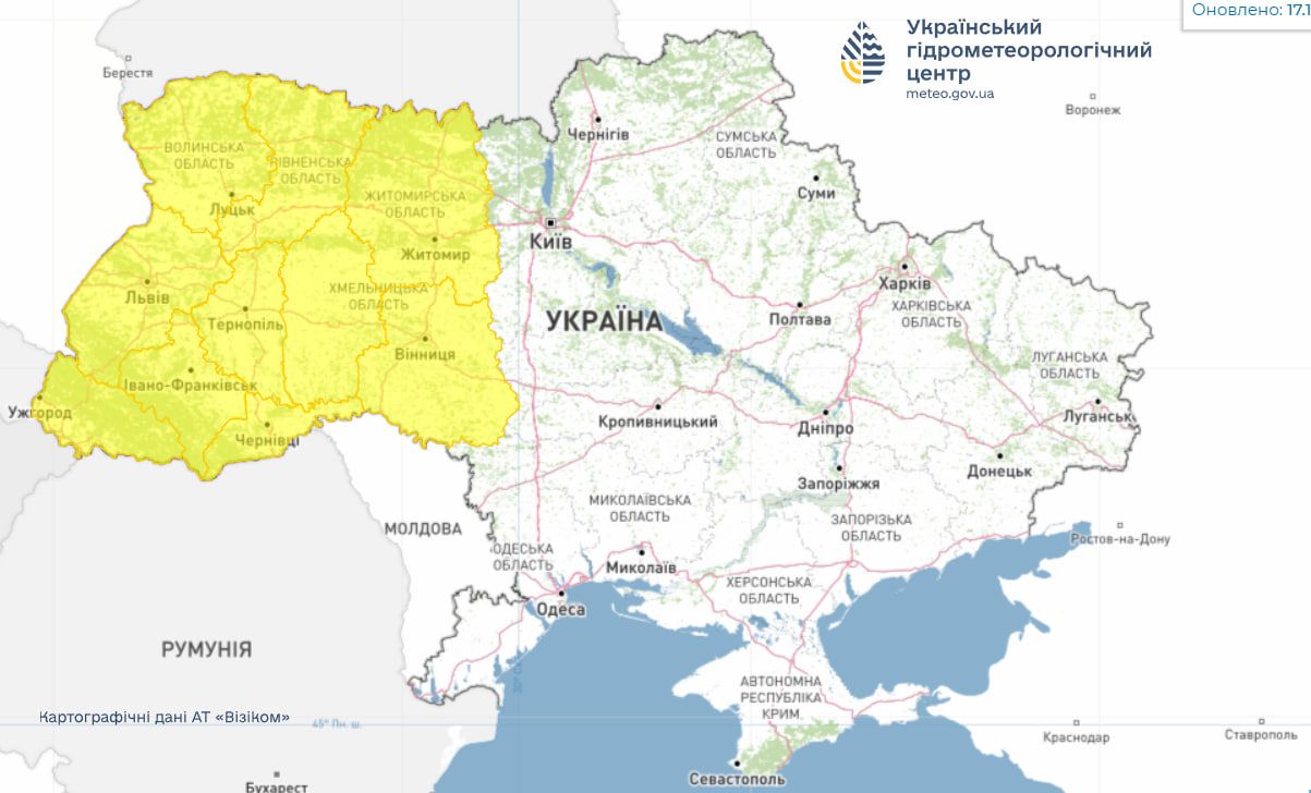 - Укргідрометцентр оголосив штормове попередження у західних, Вінницькій та Житомирській областях на 17 листопада.