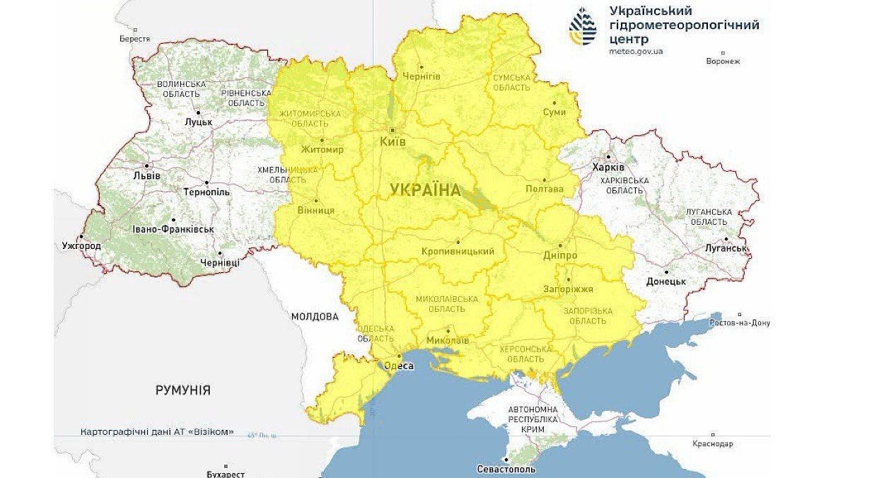 Укргідрометцентр попередив про жовтий рівень небезпеки