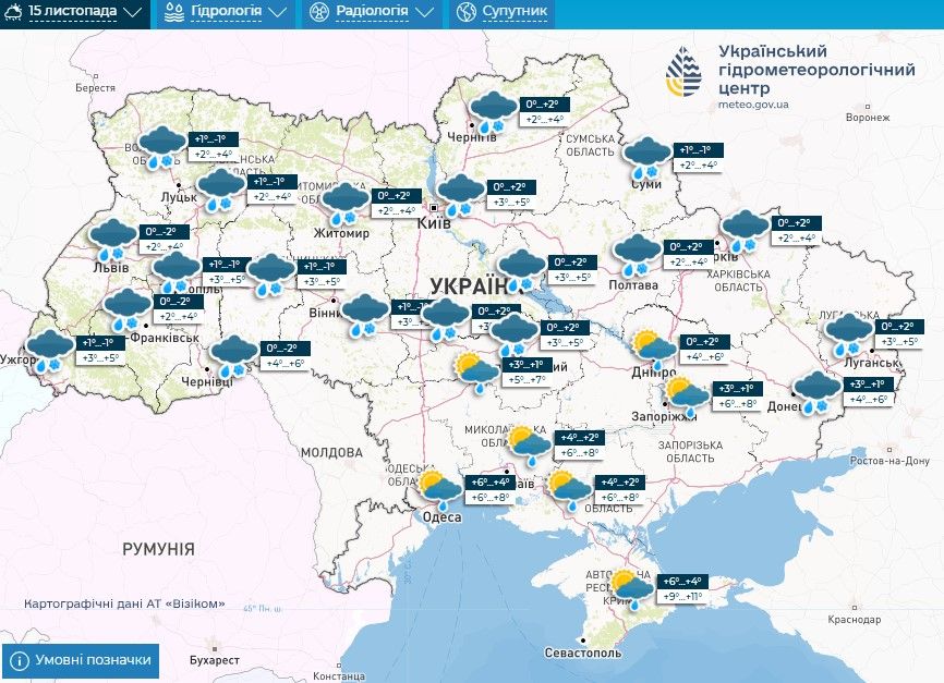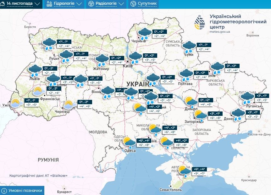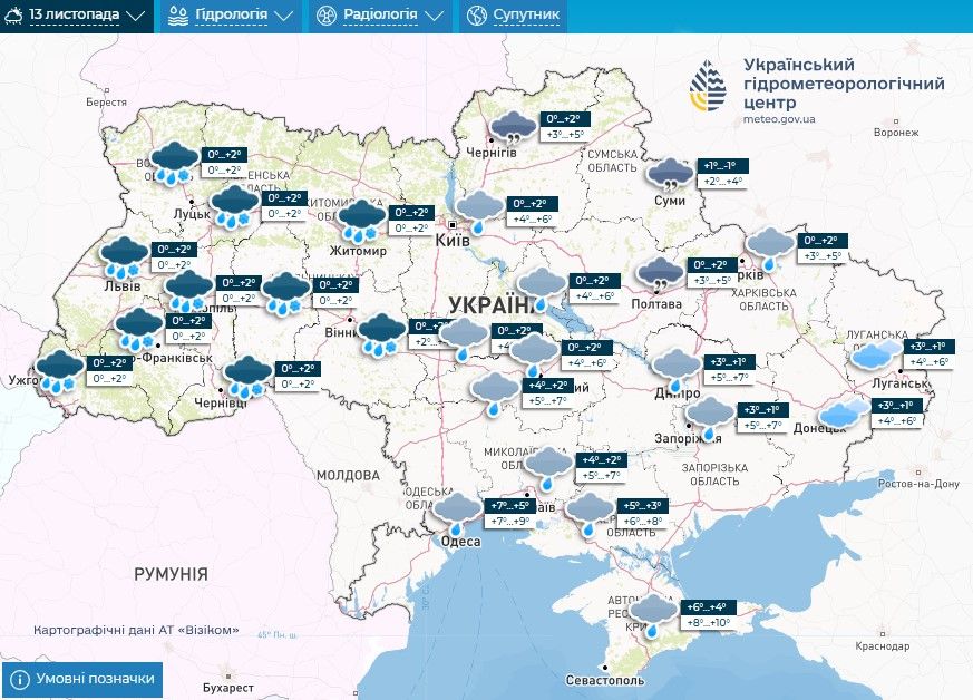 Прогноз погоди на 13 – 17 листопада / Скриншоти з Укргідрометцентру
