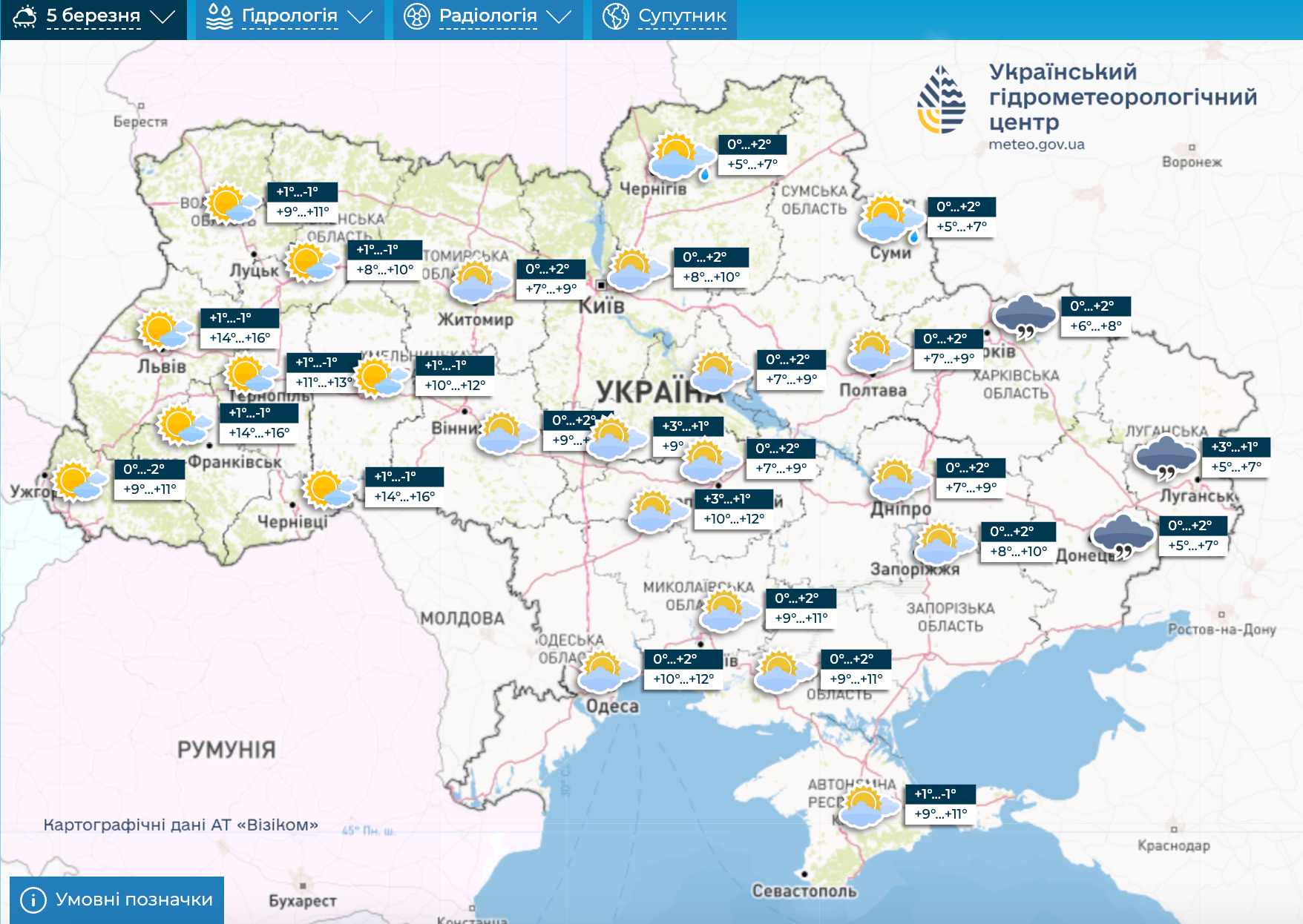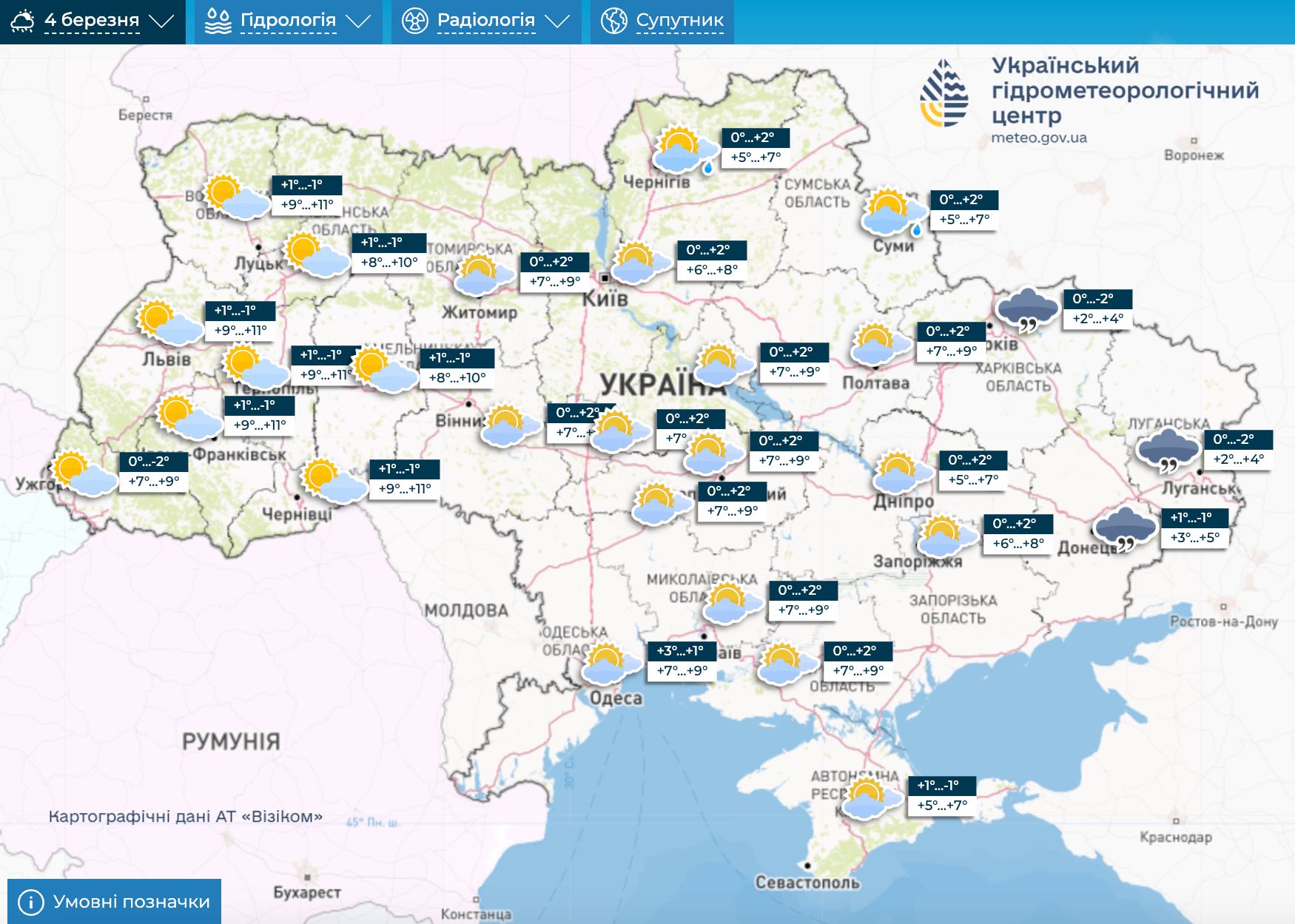 Прогноз погоди на 4 – 8 березня / Скриншот з Укргідрометцентру