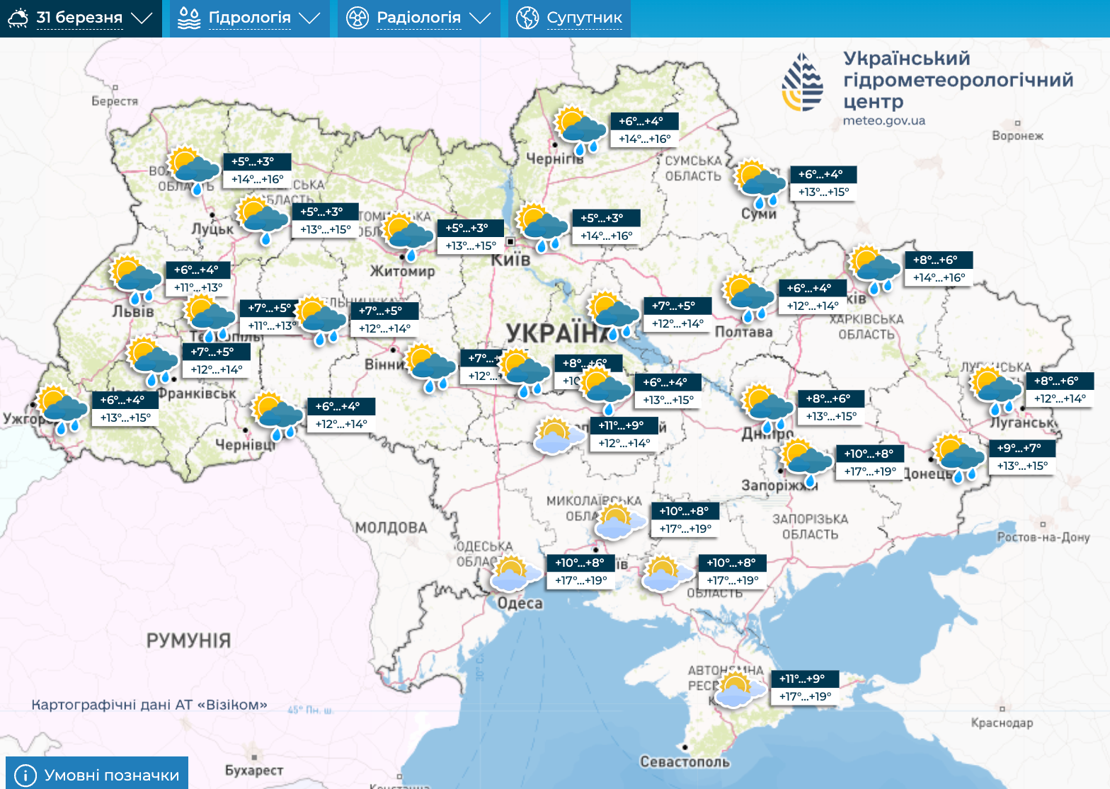 Протягом доби 30 березня на більшій частині території країни помірні дощі,