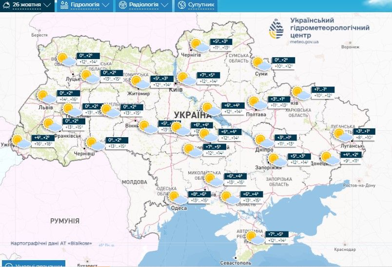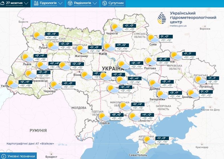 Прогноз погоди на 25 – 27 жовтня / Скриншоти з Укргідрометцентру