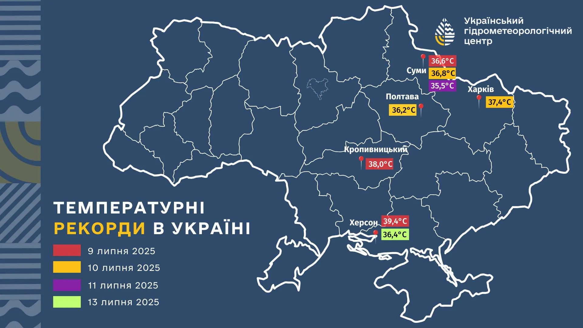 За даними Укргідрометцентру, температурні рекорди в Україні фіксуються в Кропивницькому, Херсоні, Харкові, Сумах та Полтаві. Синоптики назвали рекордні температури в регіонах: