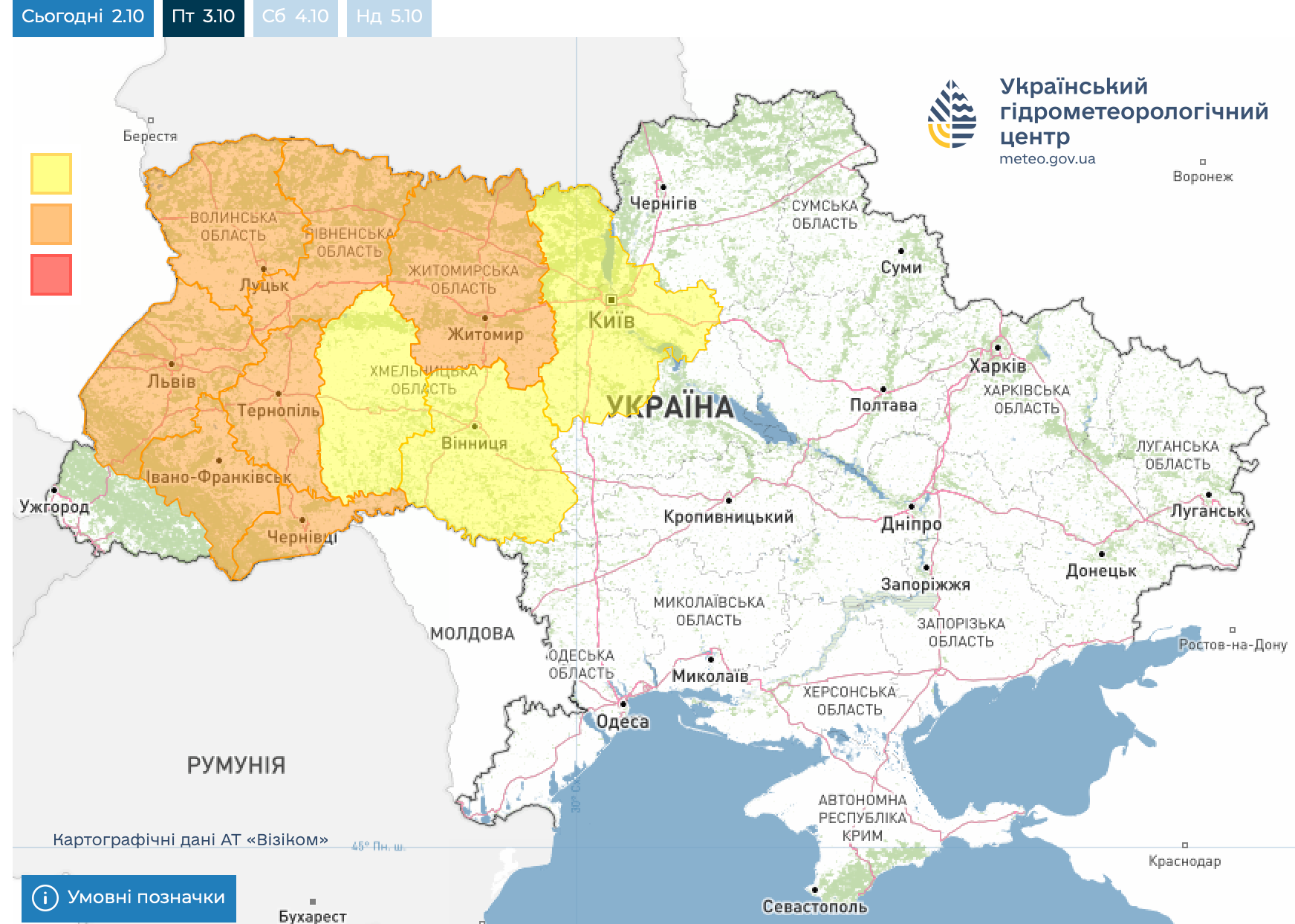 Зверніть увагу! Вночі 3 жовтня у Хмельницькій, Вінницькій і Київській областях очікуються заморозки на поверхні ґрунту 0 – -5 градусів (I рівень небезпечності, жовтий); на Прикарпатті, Волині, Рівненщині та Житомирщині заморозки у повітрі 0 – -3 (II рівень небезпечності, помаранчевий).