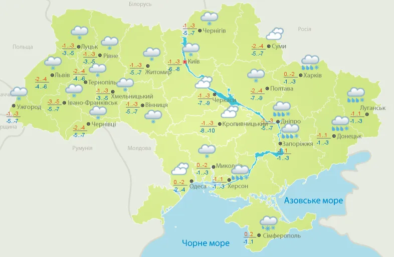 Прогноз погоди на п'ятницю, 4 січня, від Укргідрометцентру