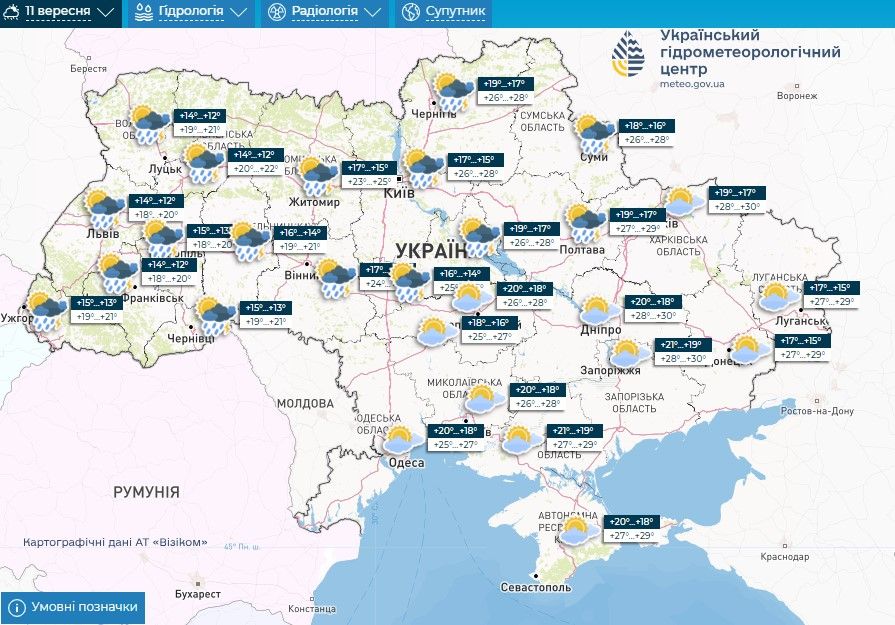 Синоптики прогнозували, на ніч 10 вересня +10 – +15 градусів, на узбережжі морів до +17. у середу й четвер +15 – +20 градусів. Тільки в південних областях і Криму ще +18 – +23 градуси.