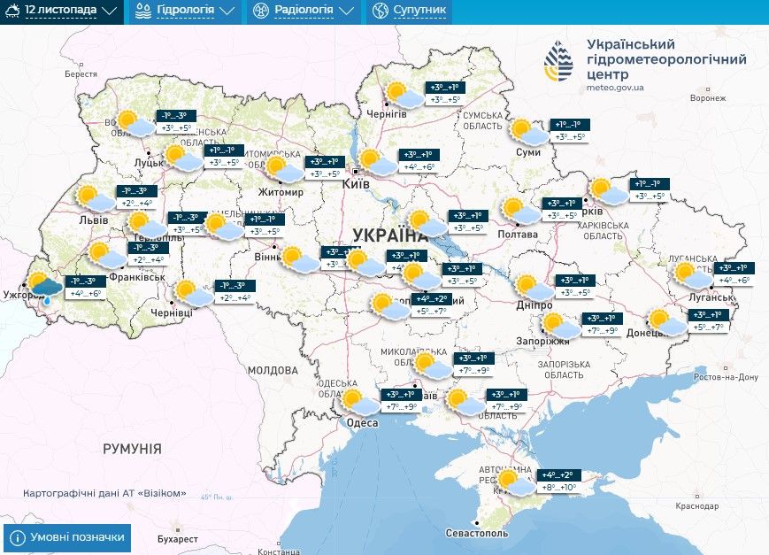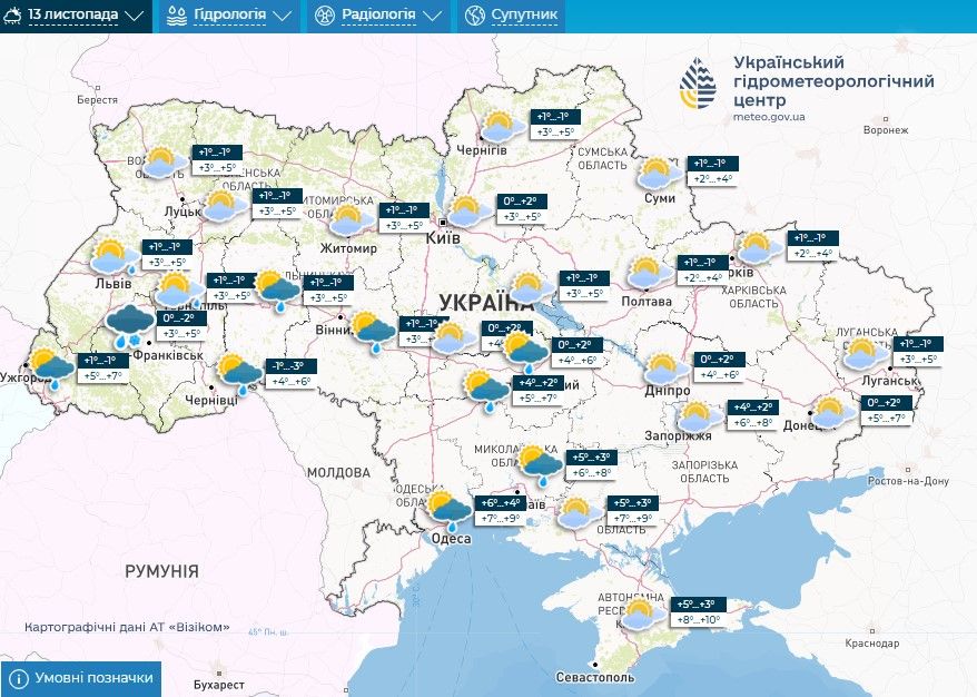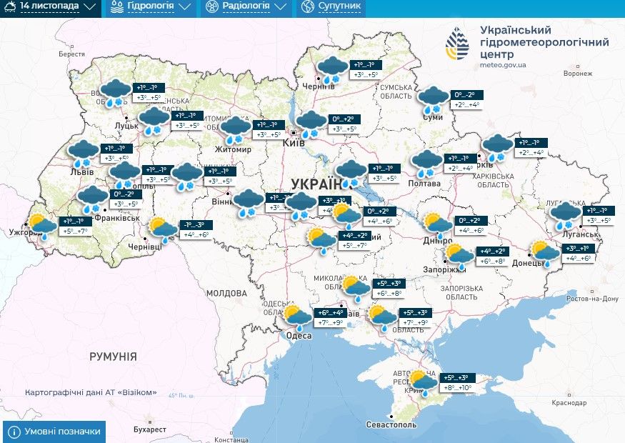 Прогноз погоди на 10 – 14 листопада / Скриншоти з Укргідрометцентру
