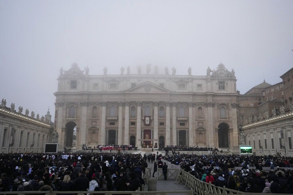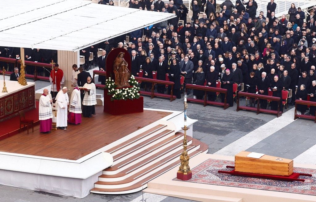 Похоронну месу у базиліці Святого Петра очолює Папа Франциск. До слова, на похорон він прибув на інвалідному візку. Під час проповіді Франциск попросив, щоб "Бенедикт був прийнятий Богом у вічній славі".