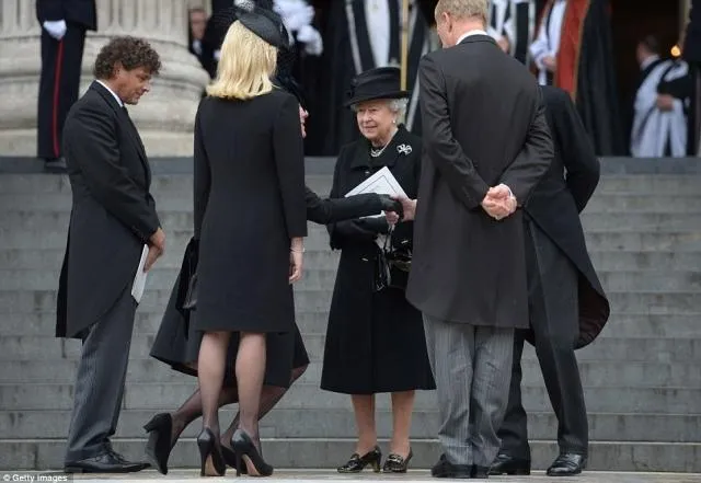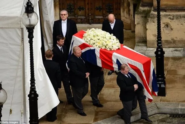 Після молитви архієпископа Кентерберійського Джастіна Уелбі труну з тілом колишнього прем'єра винесли з собору у супроводі членів сім'ї Тетчер.
