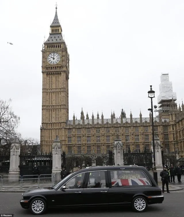 На фото - авто з труною "залізної леді" проїжджає повз будинок британського парламенту.