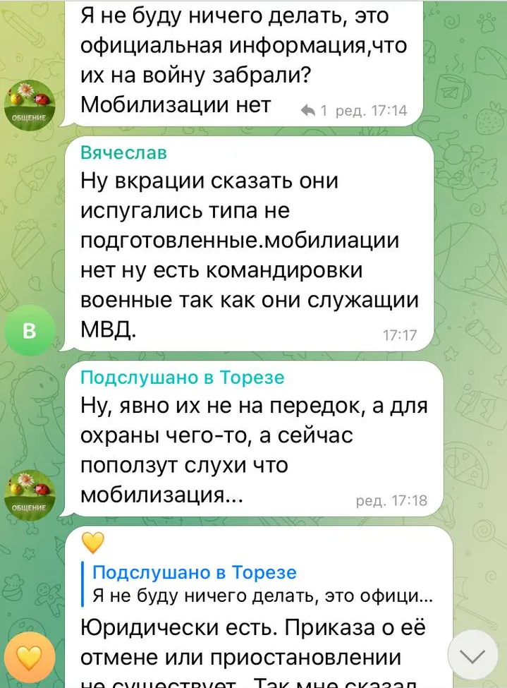Що цікаво, у соцмережах так званих "ДНР" та "ЛНР" згадки про якісь бунти дружин поліцаїв знайти дуже важко. Адміністратори чистяковської спільноти "Підслухано в Торезі" й взагалі заявили, що "мобілізації нема, як і офіційної інформації про те, що чоловіків забрали на війну". Мовляв, якщо когось кудись і відправили, то "точно не на передок".