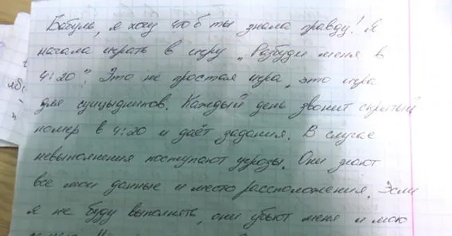 В кімнаті однієї зі зниклих дівчат знайшли лист, адресований бабусі, в якому дитина розповідала про вступ до гри в соцмережі, яка призводить до суїциду.