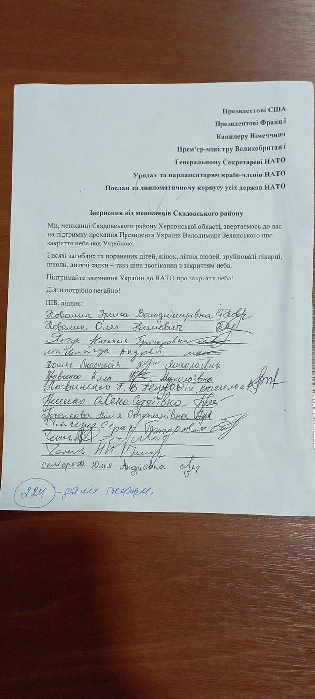 На Херсонщині люди долучилися до збору підписів за закриття неба над Україною.