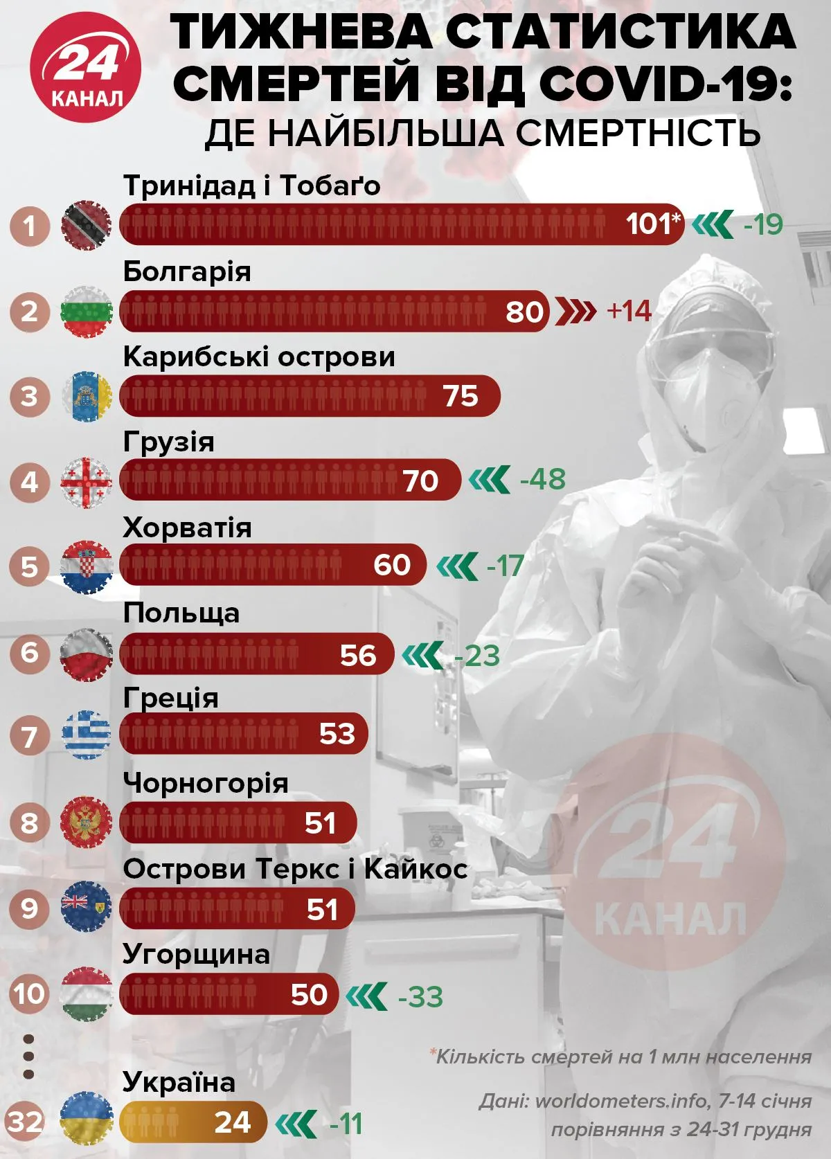 Смертність від коронавірусу у світі за останній тиждень / Інфографіка 24 канал