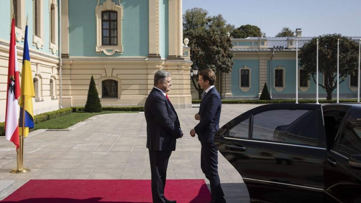 Президент України Петро Порошенко зустрів Федерального канцлера Республіки Австрія Себастьяна Курца на ґанку Маріїнського палацу. Перед початком зустрічі Курц зробив запис у Книзі Почесних гостей.