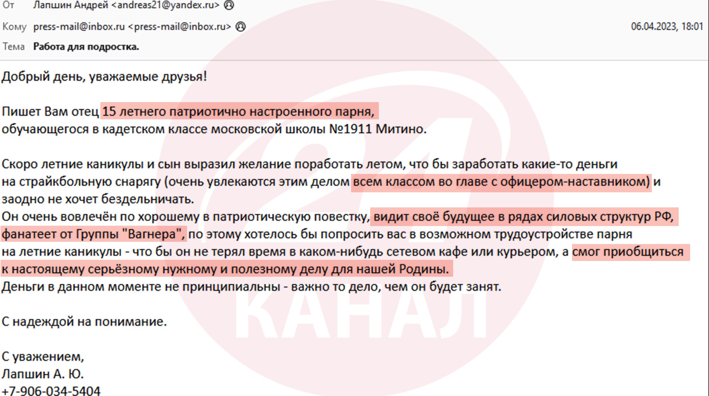Як не дивно, проте з початку 2023 року основна діяльність пригожинської пресслужби полягала не в тому, щоб спілкуватися з пресою. Буквально з 1 січня на пошту "Конкорда" починають тисячами надходити листи з одноманітним змістом.