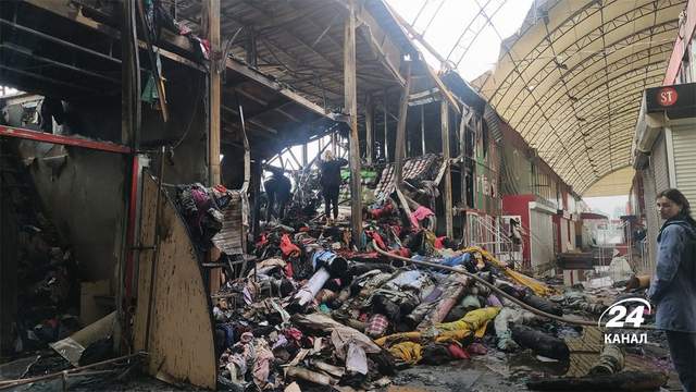 Через потрапляння російського снаряда на територію ринку згоріла приблизно тисяча квадратних метрів, повідомляє 24 канал. Рятувальникам вдалося ліквідувати пожежу через кілька годин.