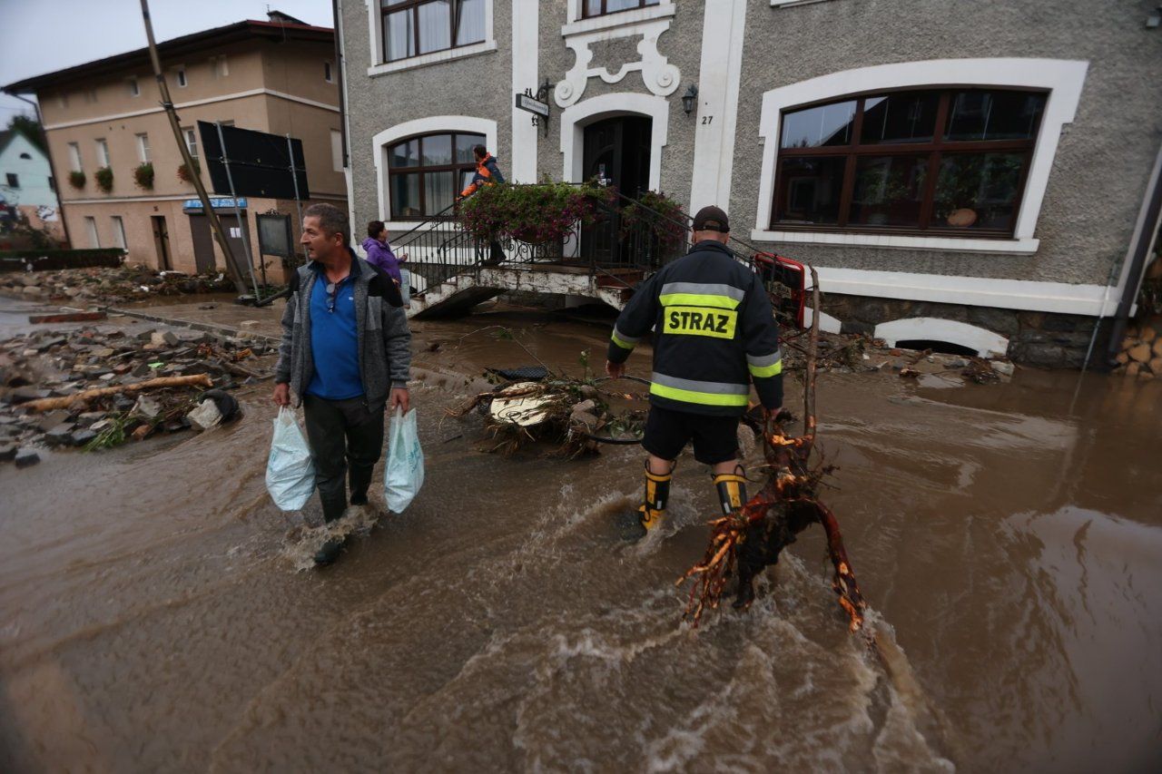 В гірському містечку Строне-Шльонські Нижньосілезького воєводства внаслідок повені була пошкоджена дамба на річці Моравка, у результаті місто фактично опинилось під водою.