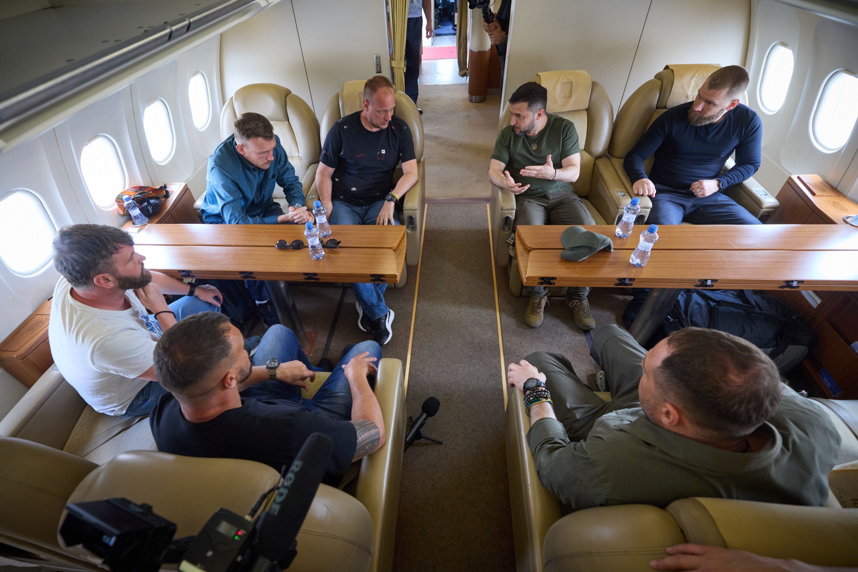 Денис "Редіс" Прокопенко, Святослав "Калина" Паламар, Сергій "Волина" Волинський, Олег "Аліс" Хоменко, Денис Шлега прибули на аеродром, де їх зустрів Володимир Зеленський. Усі зустрічі супроводжувалися теплими обіймами.