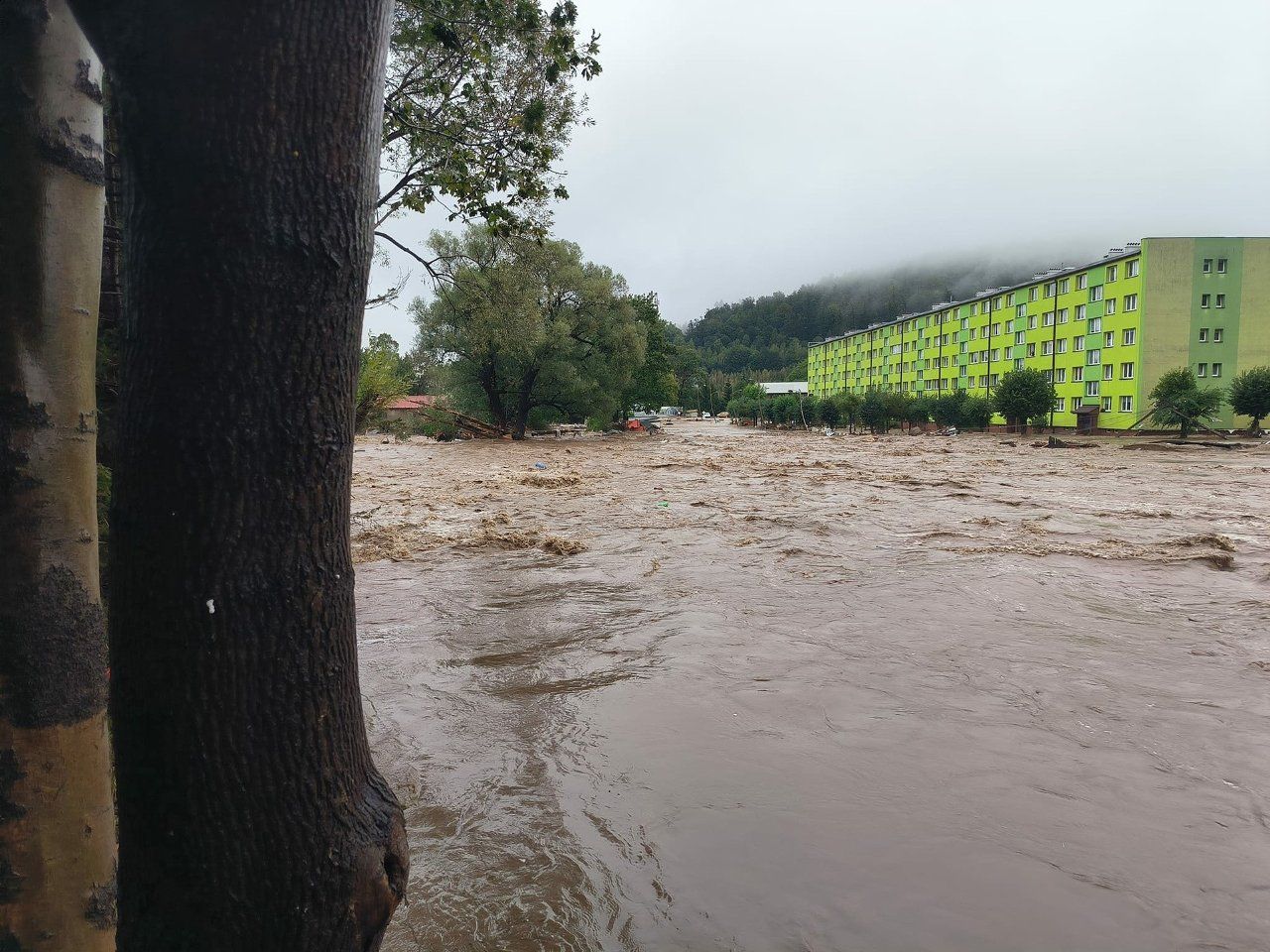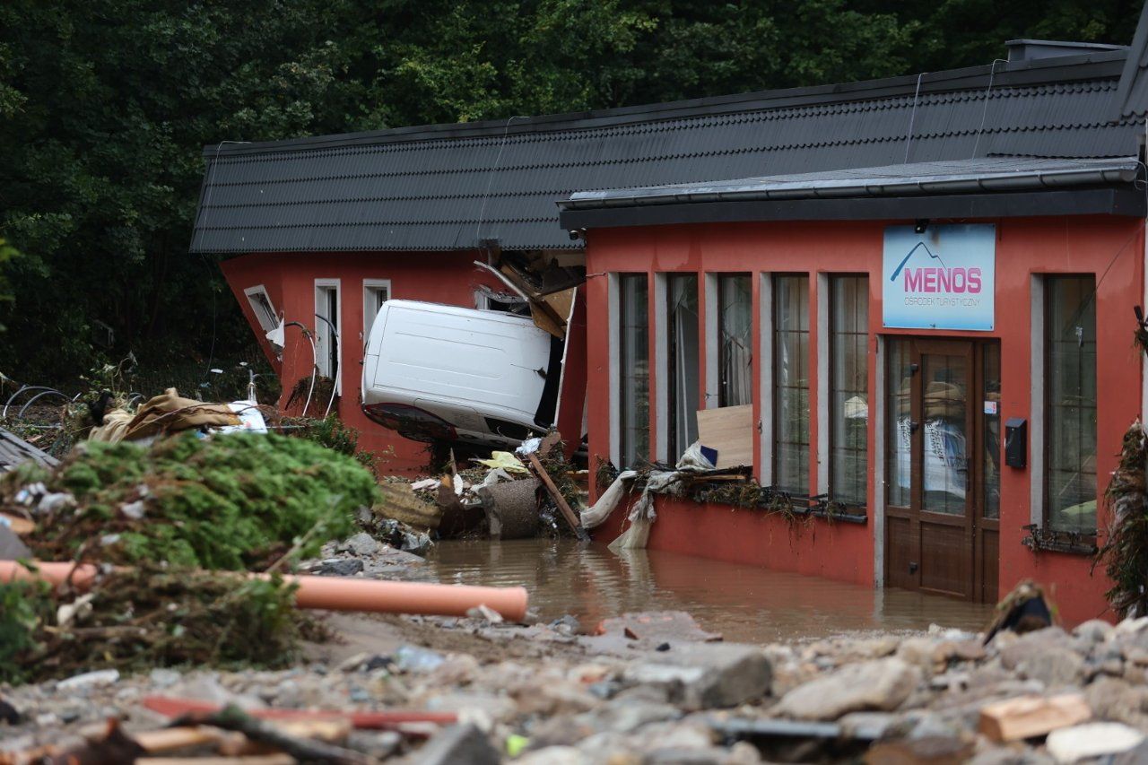 Польські журналісти повідомили, що містечко Строне-Шльонські зазнало величезних збитків під час недільної хвилі повені. Після прориву частини дамби руйнівна хвиля відразу ж хлинула на місто.