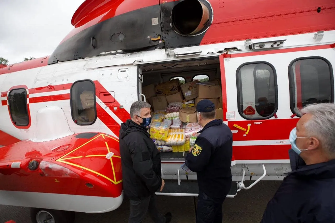 Гелікоптер ДСНС з гумдопомогою жителям постраждалих районів / фото МВС