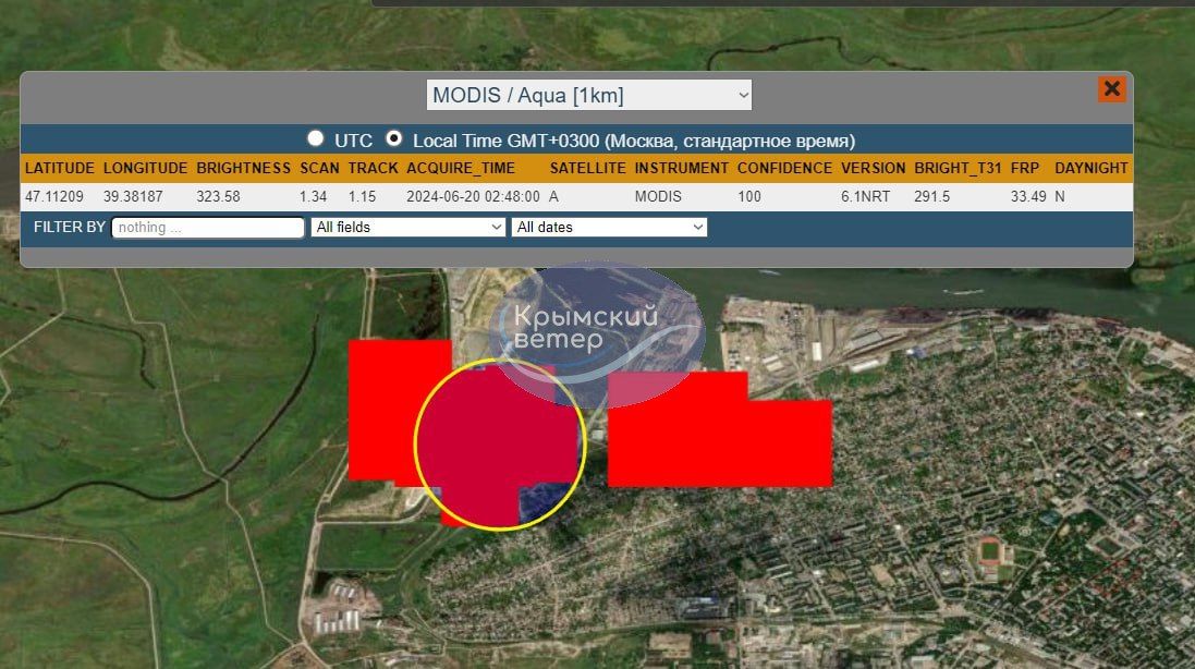 Супутникові кадри пожежі на нафтобазі / Фото "Крымский ветер" та "Крим. Реалії"