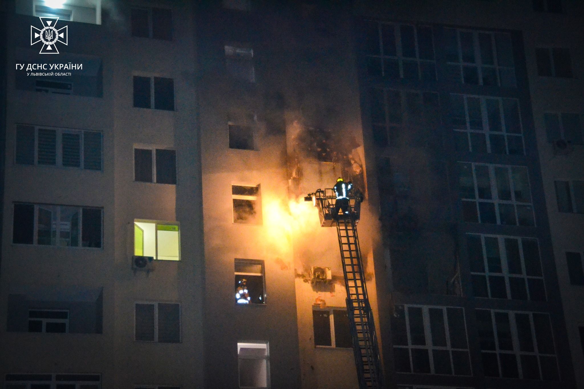 У пресслужбі ДСНС Львівської області повідомили, що до гасіння полум'я та усунення наслідків пожежі довелося залучити 28 фахівців та 7 одиниць спецтехніки. Власник квартири отримав опіки, решта людей не постраждали.