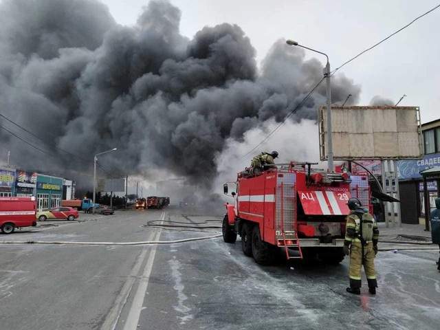 Про інцидент стало відомими приблизно о 6:30 ранку. За останніми даними, вогонь уже охопив 3 тисячі квадратних метрів. Загальна площа двоповерхового павільйону становить 3,2 тисячі квадратних метрів. Про це повідомляє агенція РИА-Новости з посиланням на представників обласного МНС.