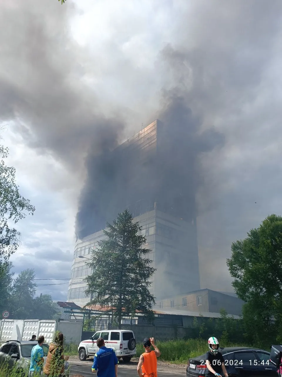 Водночас пожежа продовжується. Усередині будівлі стався обвал конструкції. Спочатку повідомлялося, що горить п'ятий, шостий, сьомий та восьмий поверхи. Однак згодом російські ЗМІ написали, що пожежа охопила всі поверхи. Є ризик обвалення покрівлі. Площа пожежі – 4,5 тисячі квадратних метрів.